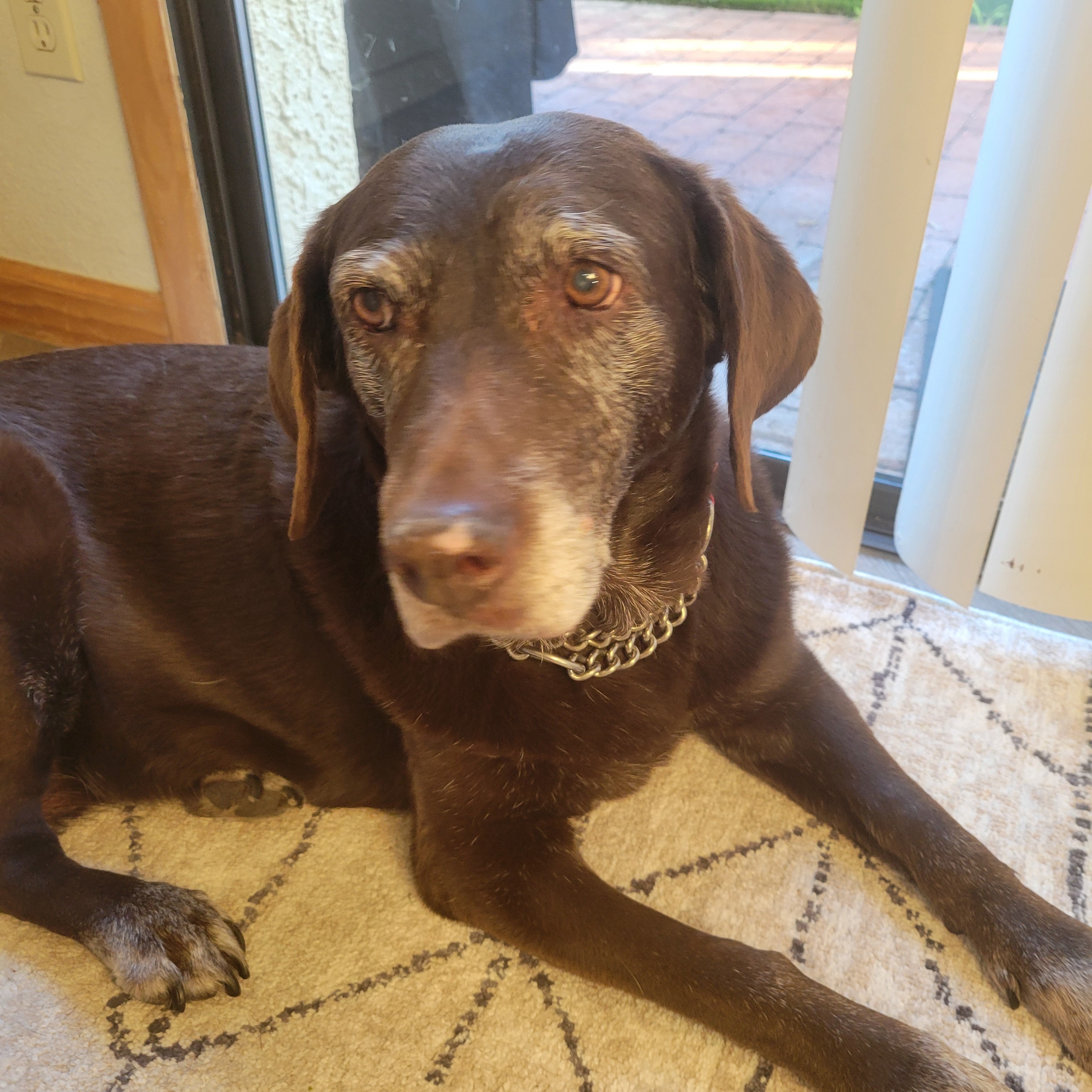 Hi, I'm Coco 6! I am a 14-year old, petite chocolate Lab girl weighing 59 lbs. Age is just a number for me as I am in great health except for some arthritis. My tail has not stopped wagging since I got to my foster's home. To say I am a perfect lovable Lab is an understatement.