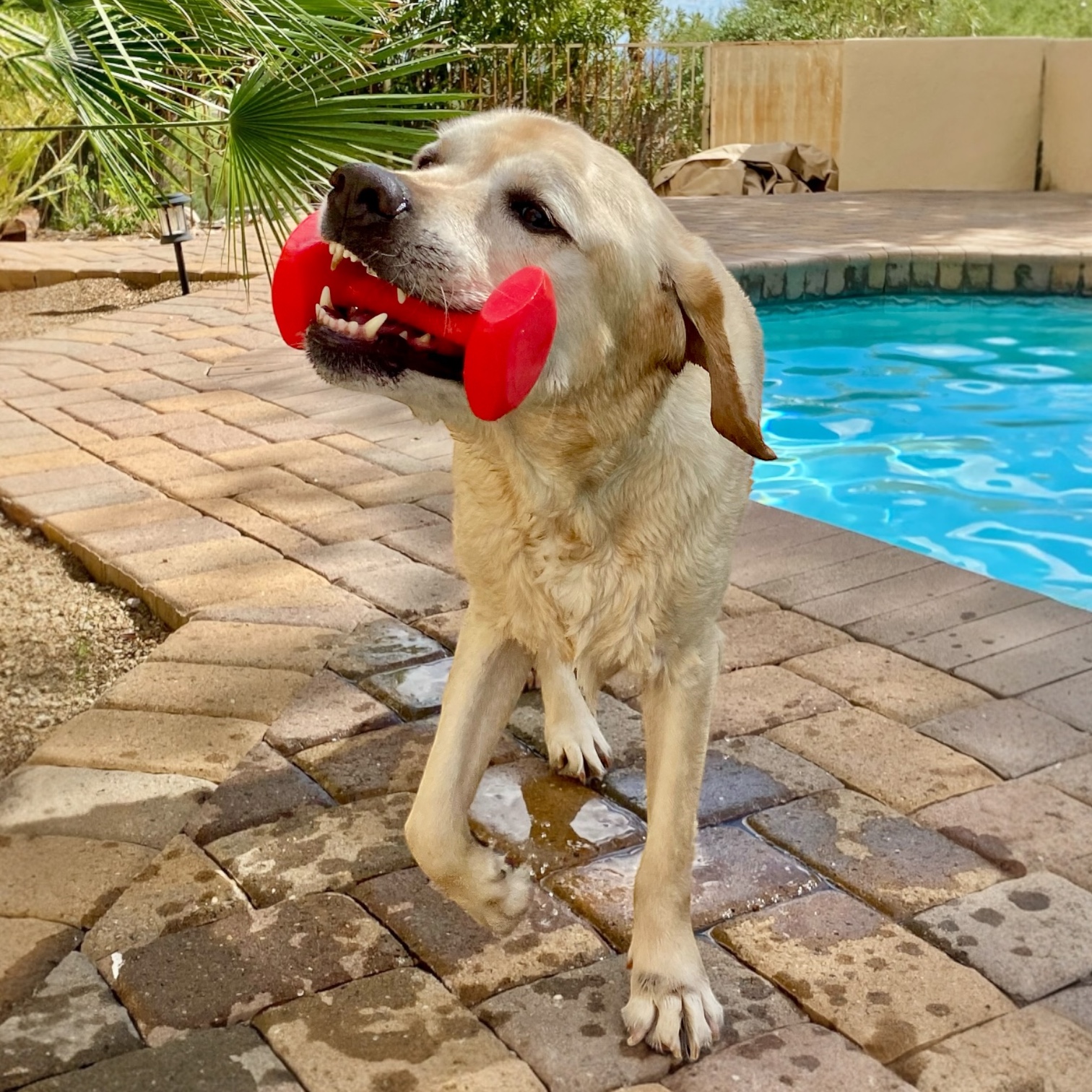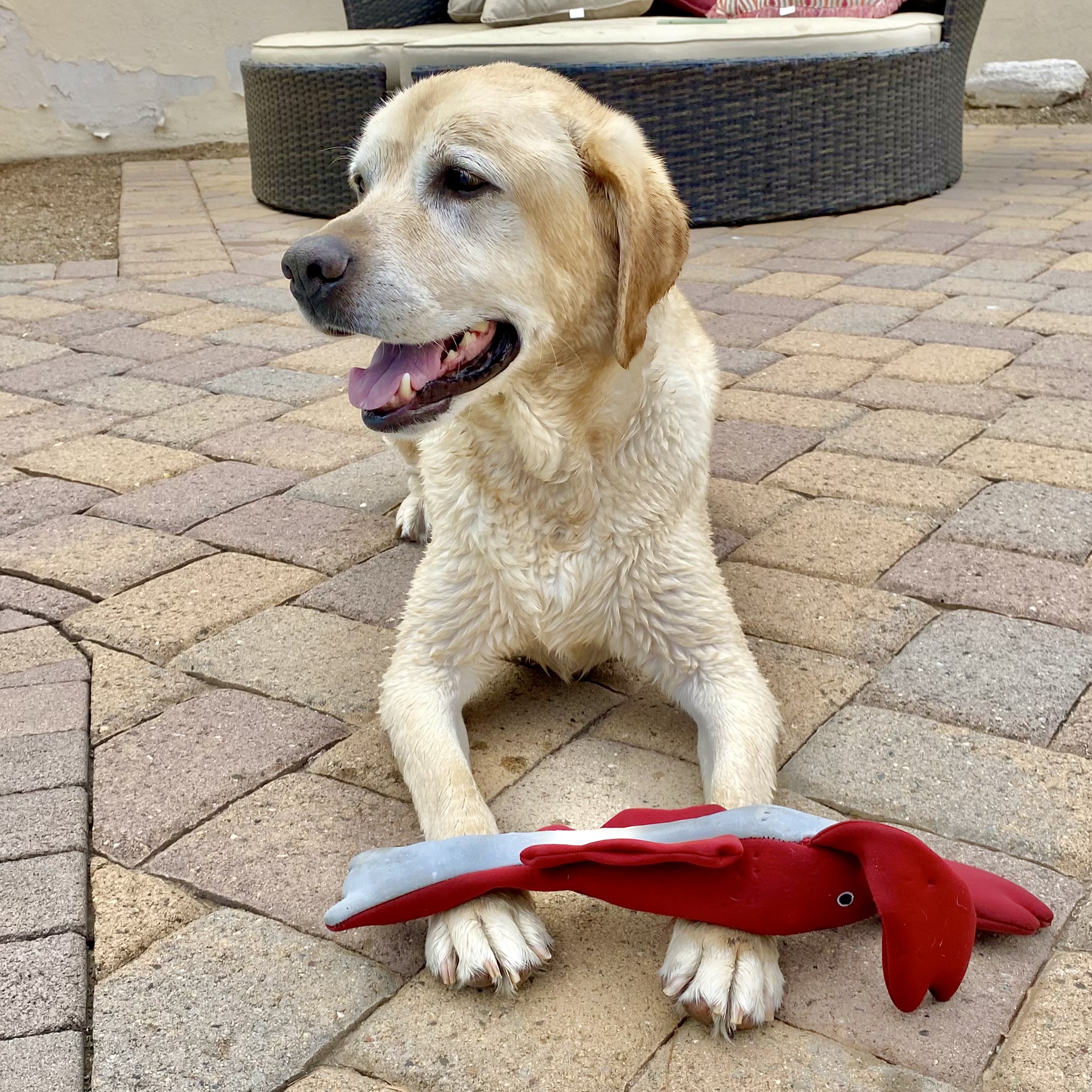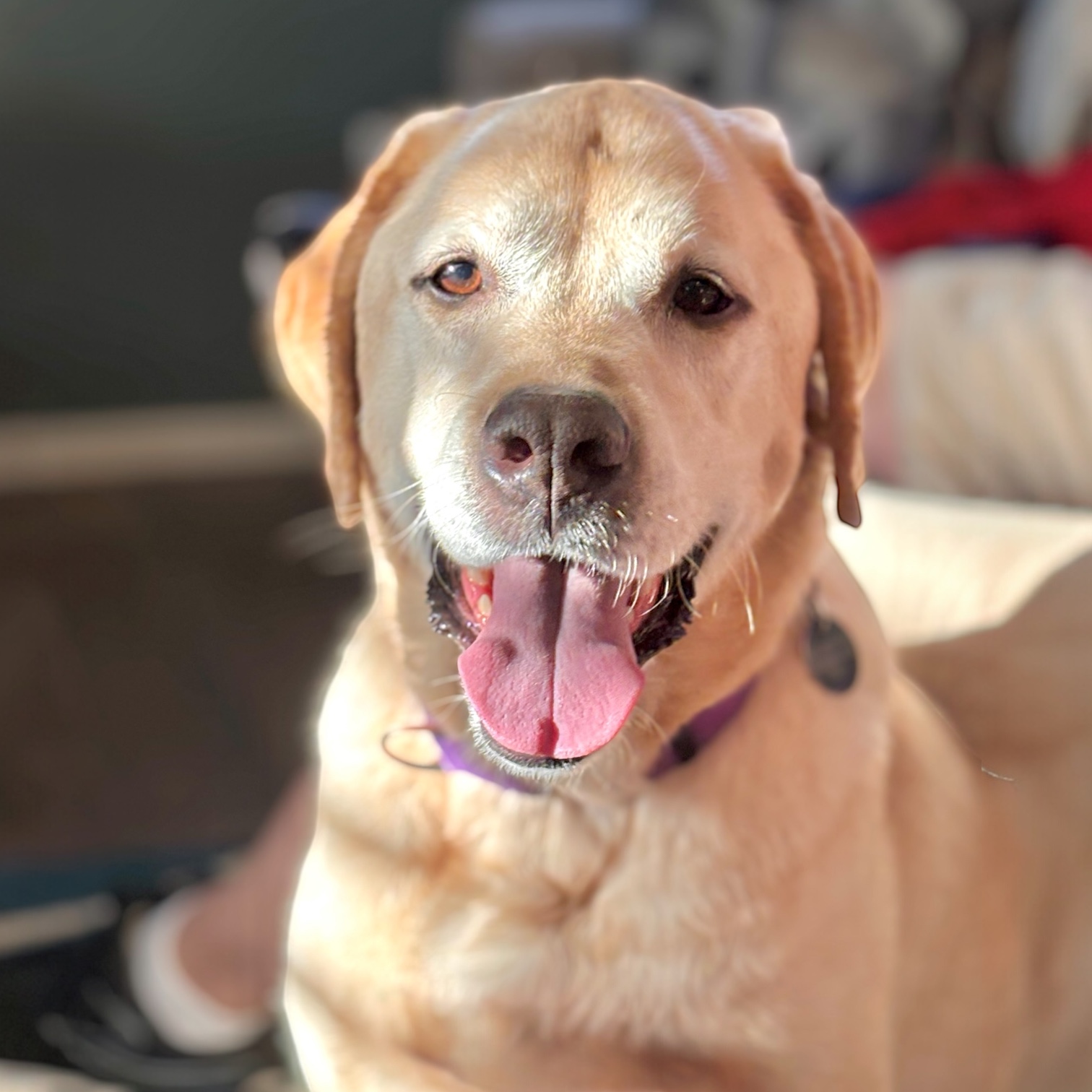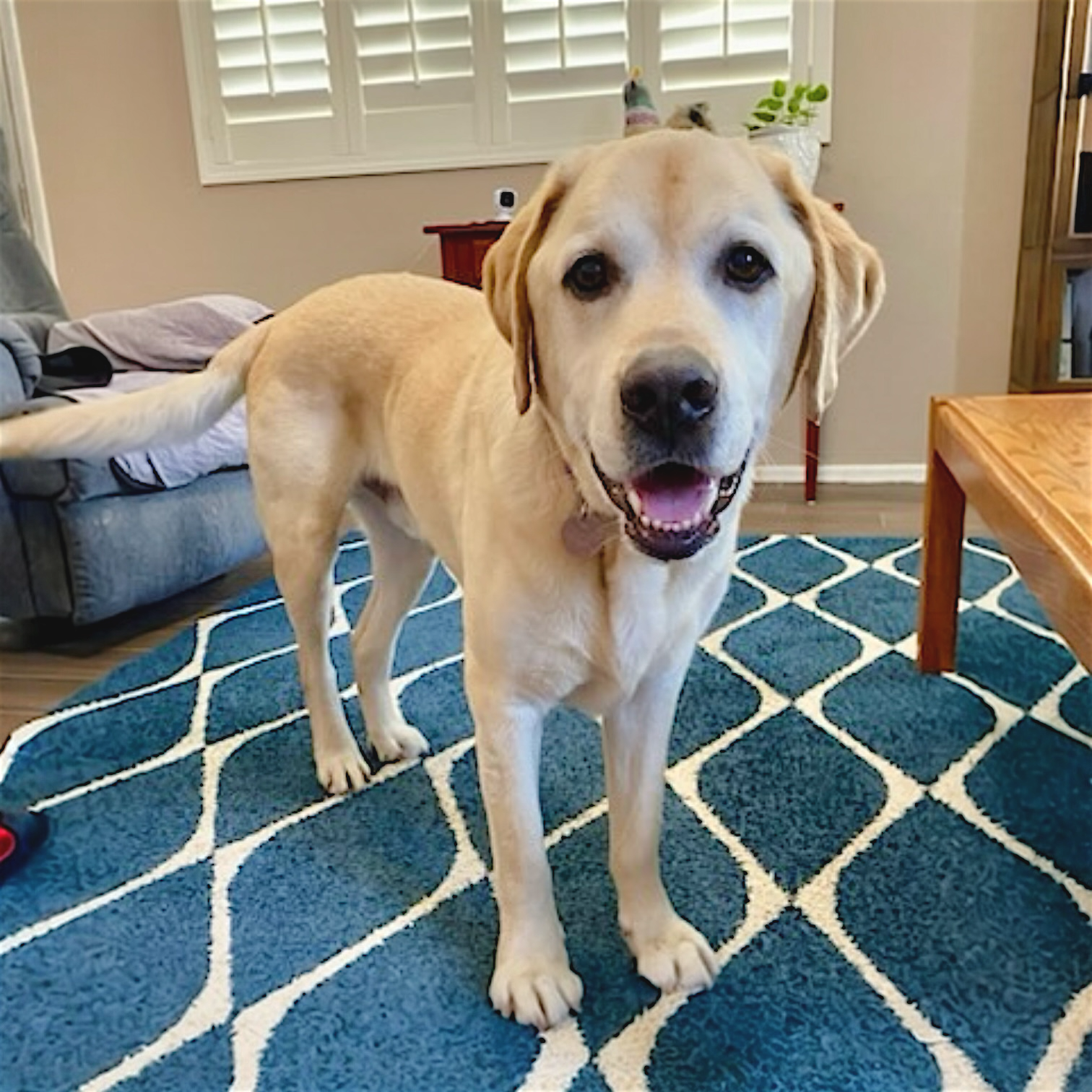 Finn is a youthful and active 73 lb, 8 y/o yellow lab that’s ready for his new forever home. He is housebroken and trustworthy when left alone. He is smart and food motivated, so he is expected to learn a doggie door quickly. He is crate trained but currently sleeps next to his fosters in his own bed. Finn is good with kids, has lived with other dogs in the past, and is even good with the resident cat. He knows his basic commands like sit, down, stay, off, wait, and come. Finn is eager to explore during our walks and is working on improving his leash manners. He does like to play fetch and tug-a-war and did enjoy cooling off on the top step of the pool. Finn hops right up into the car or truck and rides well to his next adventure. He loves to meet new people, especially if they have treats for him. Finn is calm around the house, willing to cuddle, or see what comes next. Are you in on the fabulous Mr. Finn?