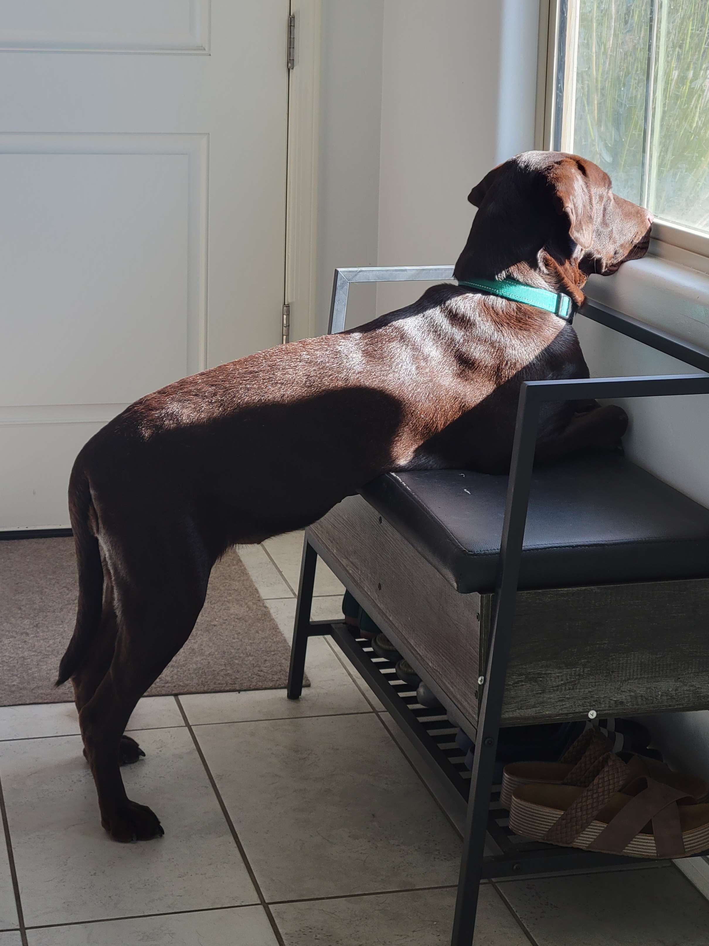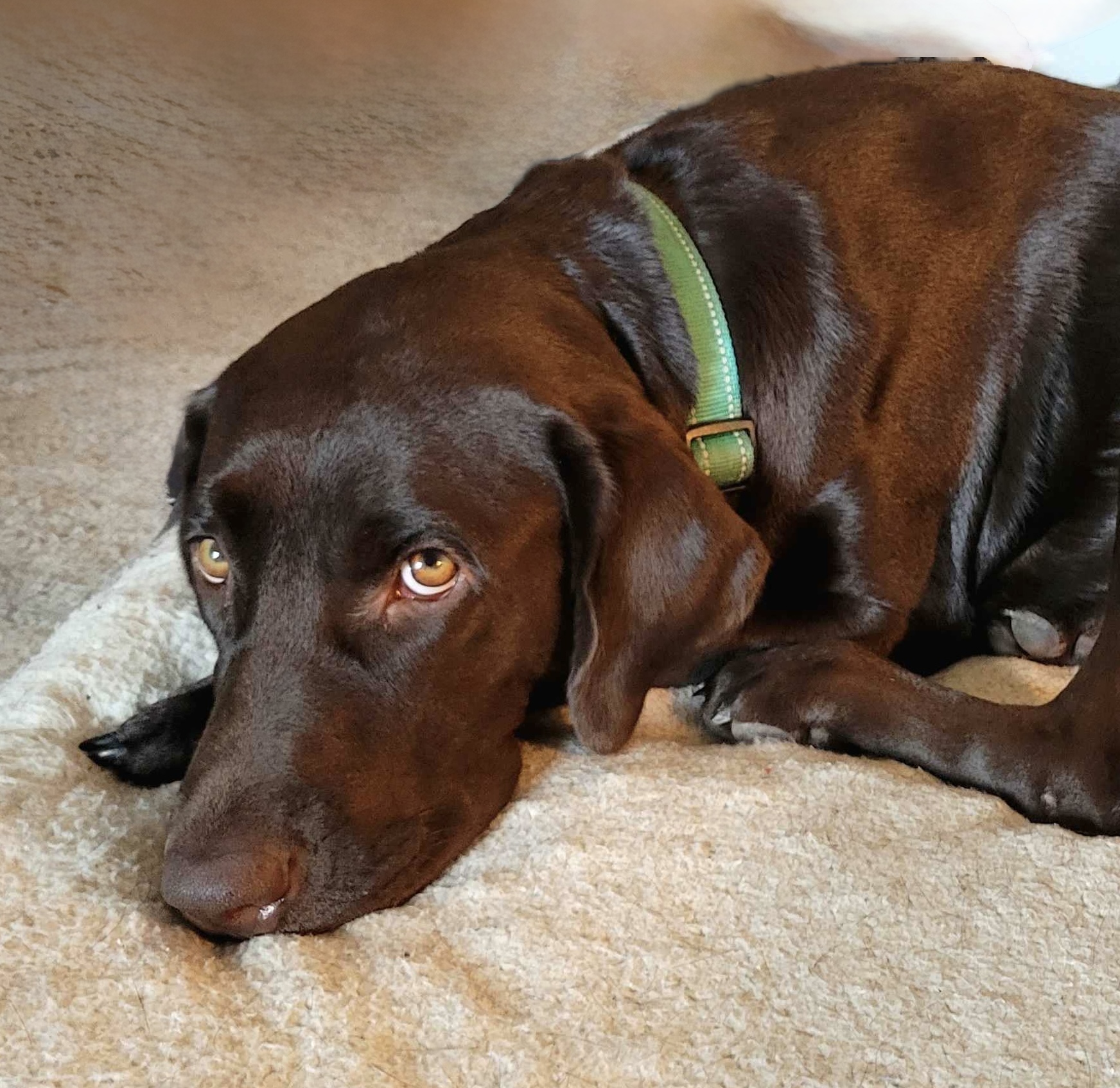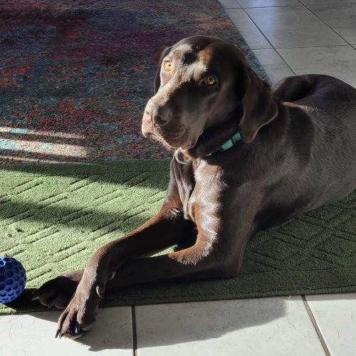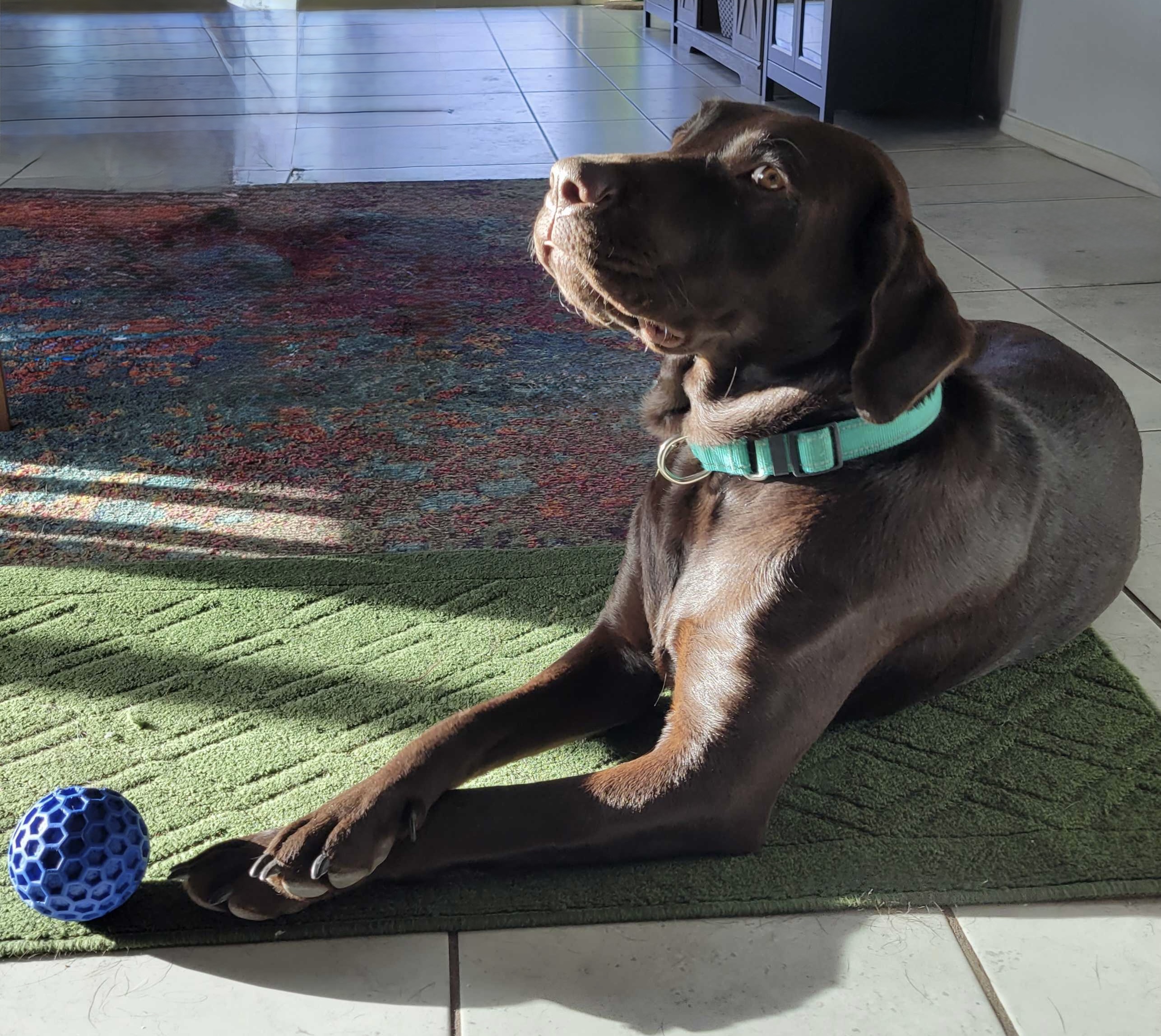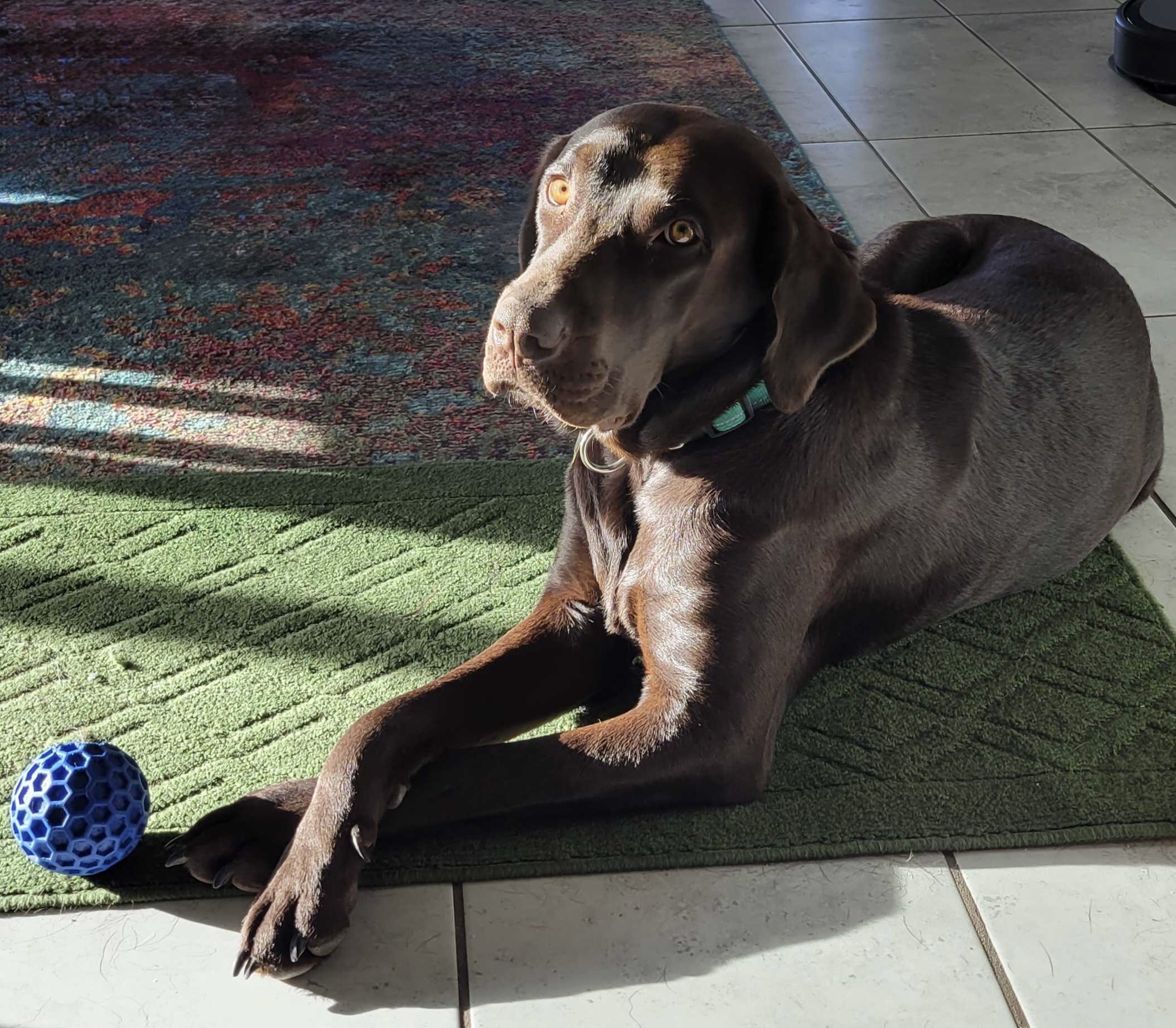 Lorelei is a gorgeous 70-lb chocolate Lab, about 2 years old. She’s a loving, playful companion who adores people, belly rubs, and cuddling up after a day of fun. Her favorite toy is a squeaky ball; even after the squeaker stops working!