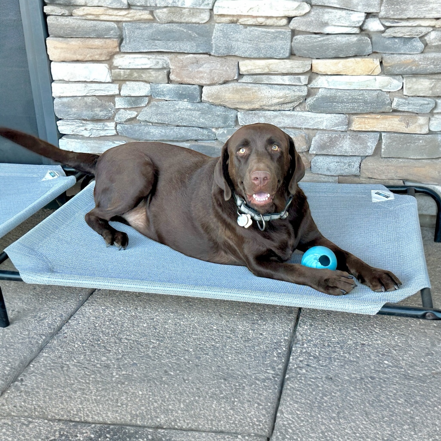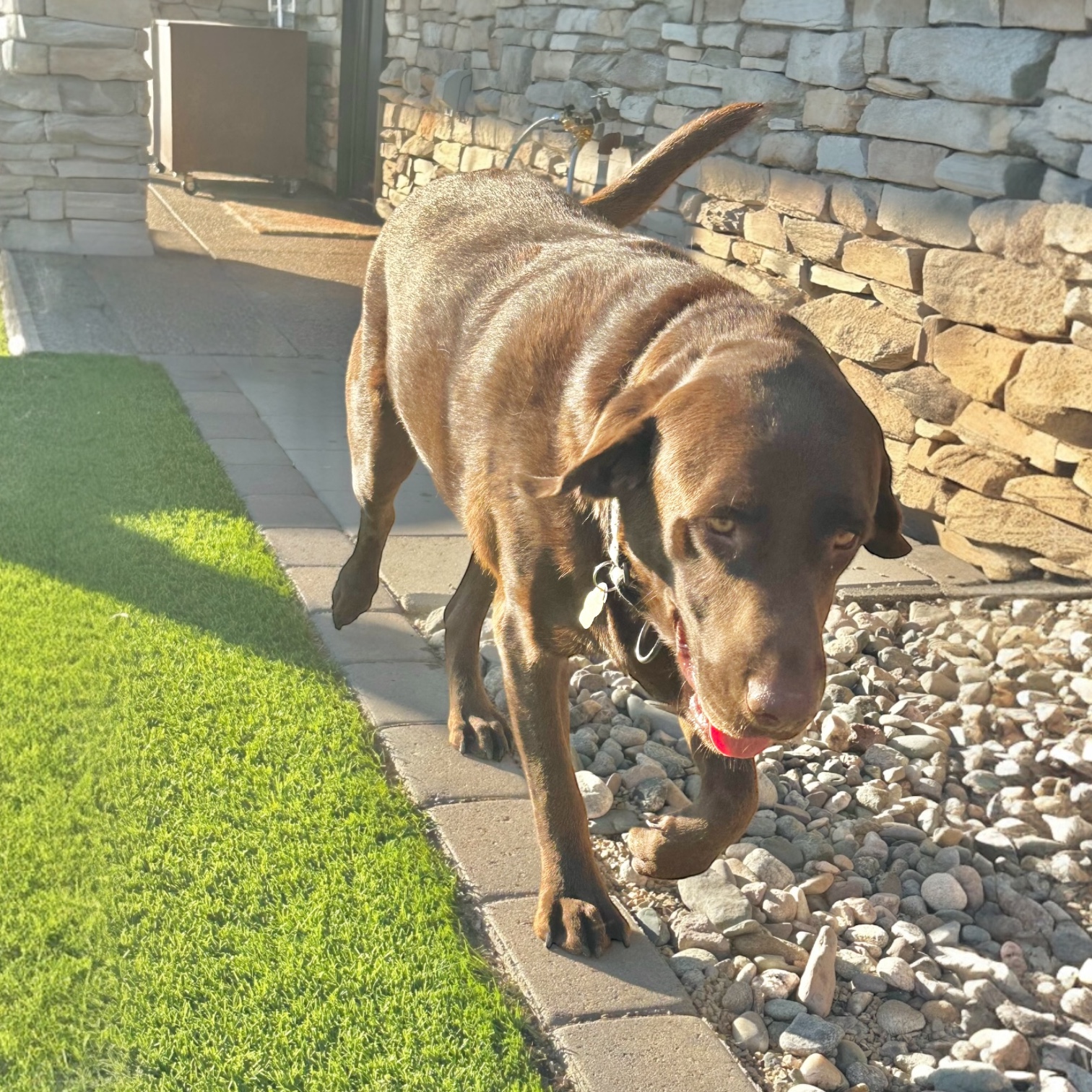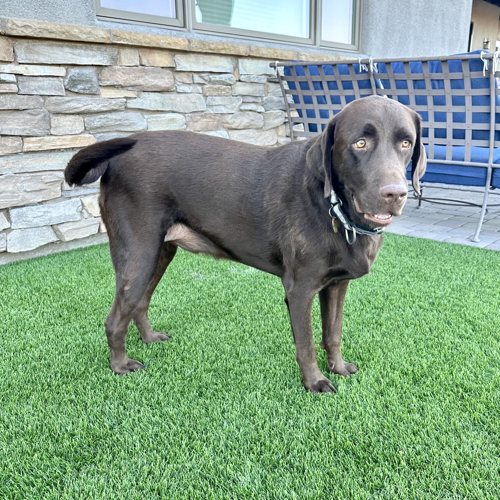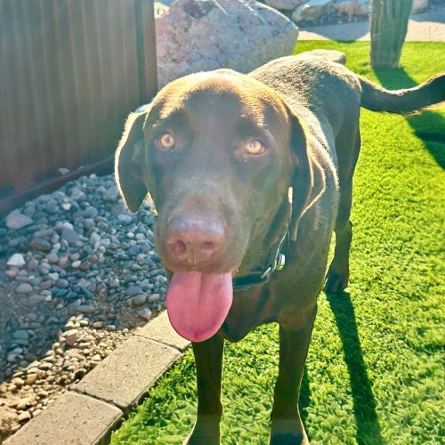 Hi, I’m Murphy (6), a 6-year-old, 102- lb handsome male Chocolate Lab. I love kids and other dogs. I am dog door trained and can be trusted alone in the house. I love going on car rides and I jump right into the car. I have not been cat nor farm animal tested. I love some good chew toys but I don’t destroy them.