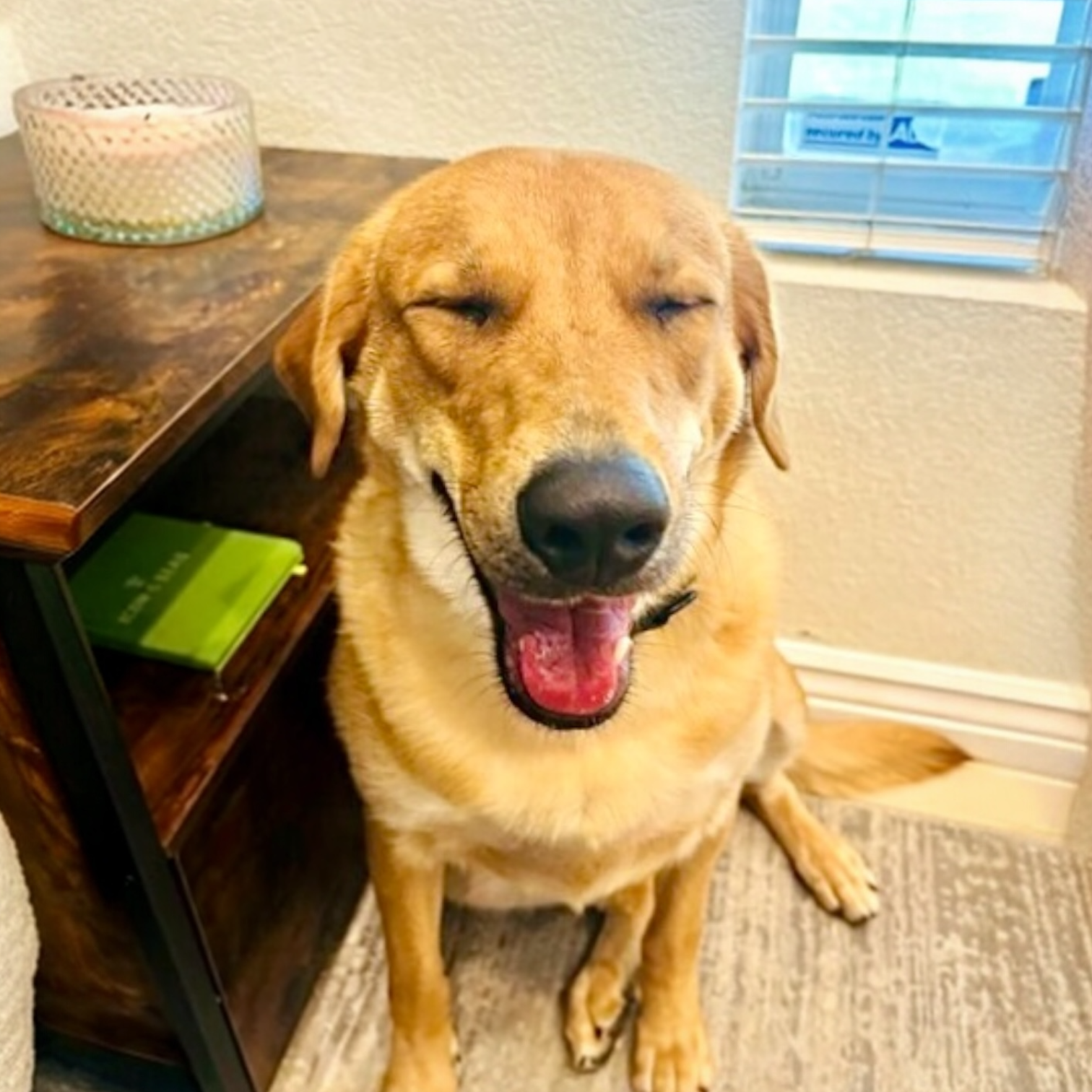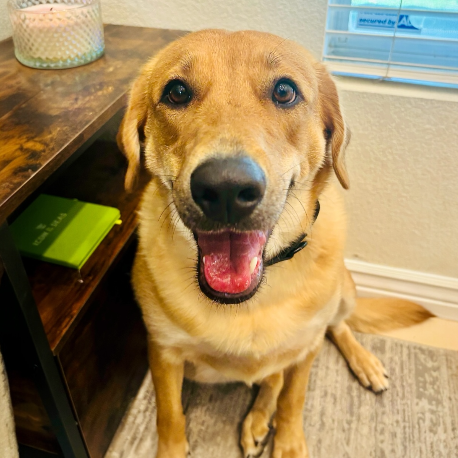 What Sandy loves most is simply being with her people. Whether it’s lounging by your side, keeping you company around the house, or joining in on family activities, she’s happiest when she’s included. She is crate trained and house trained, uses a doggy door like a champ, and is well mannered in her foster home.