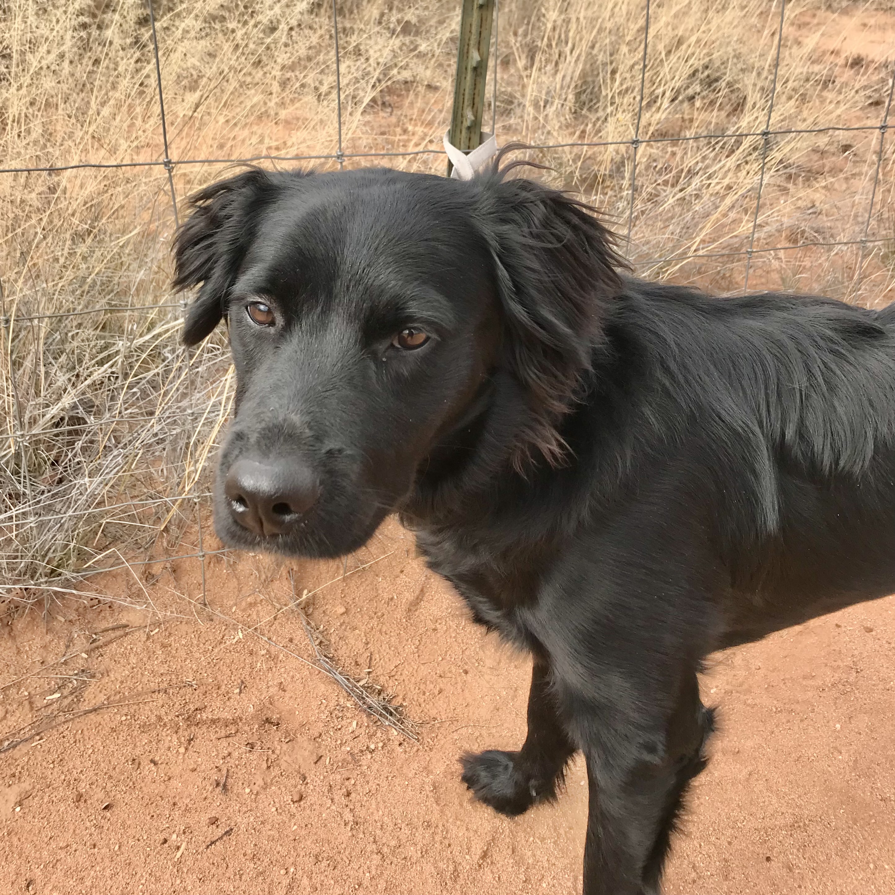 Meet Shelly, a beautiful 9-month-old, female, flat-coated retriever mix, currently weighing in at 45lbs.