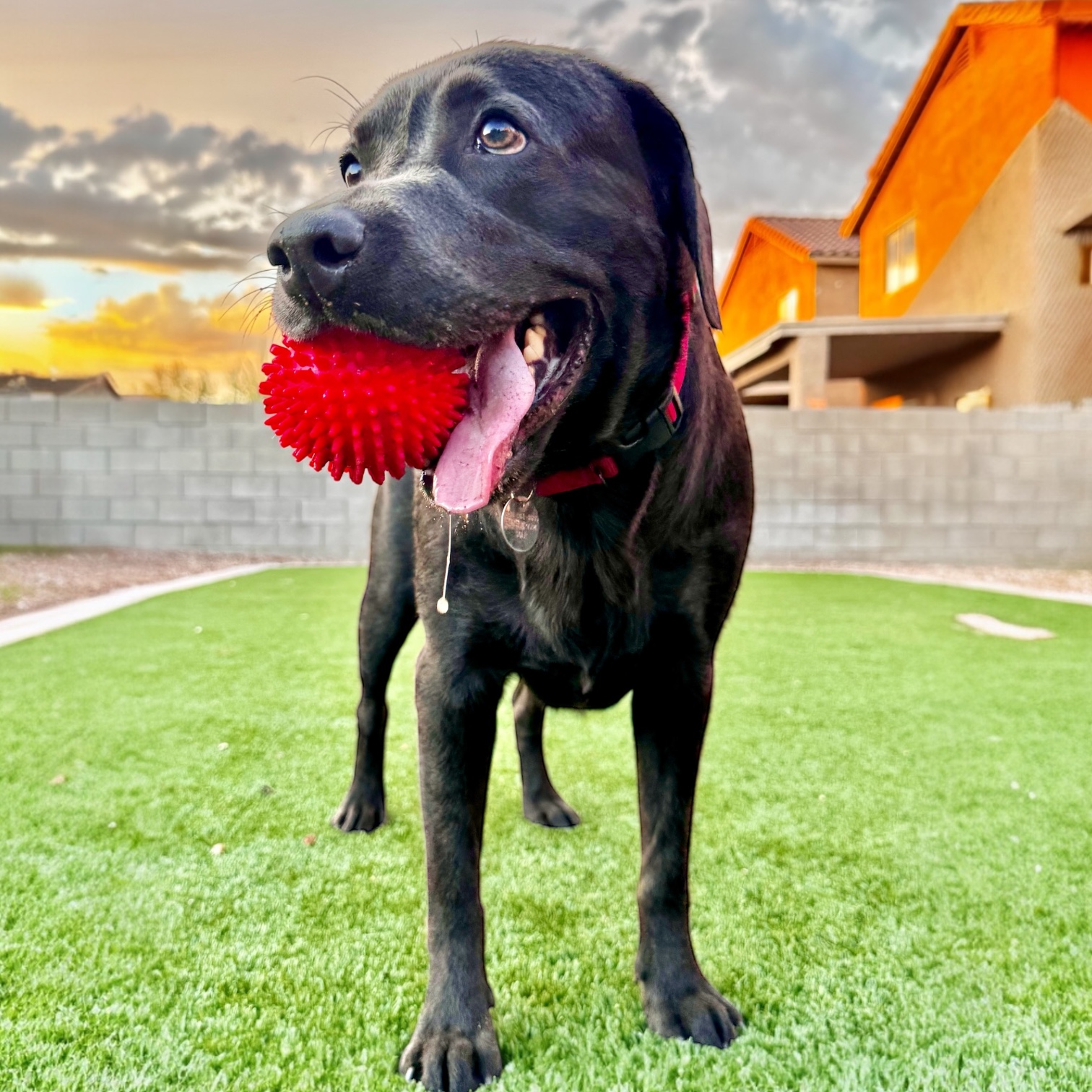 Whether you’re napping on the couch or heading out for a ride, Zane is your constant companion. He’s obsessed with toys of all kinds and can keep himself entertained for hours—though he’d prefer you join in on the fun! He’s already crate trained but does well left out in the house, too. Zane knows a few basic commands like “sit,” “shake,” and occasionally responds to “come” (especially if you have treats). He still needs a bit of leash training, but loves meeting new people. He gets along well with other dogs and would thrive in a home with older kids who can match his size and energy.